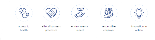 We have identified ESG topics with the greatest impact on both the company’s business value and on the society and the environment. Polpharma’s key areas of responsibility: