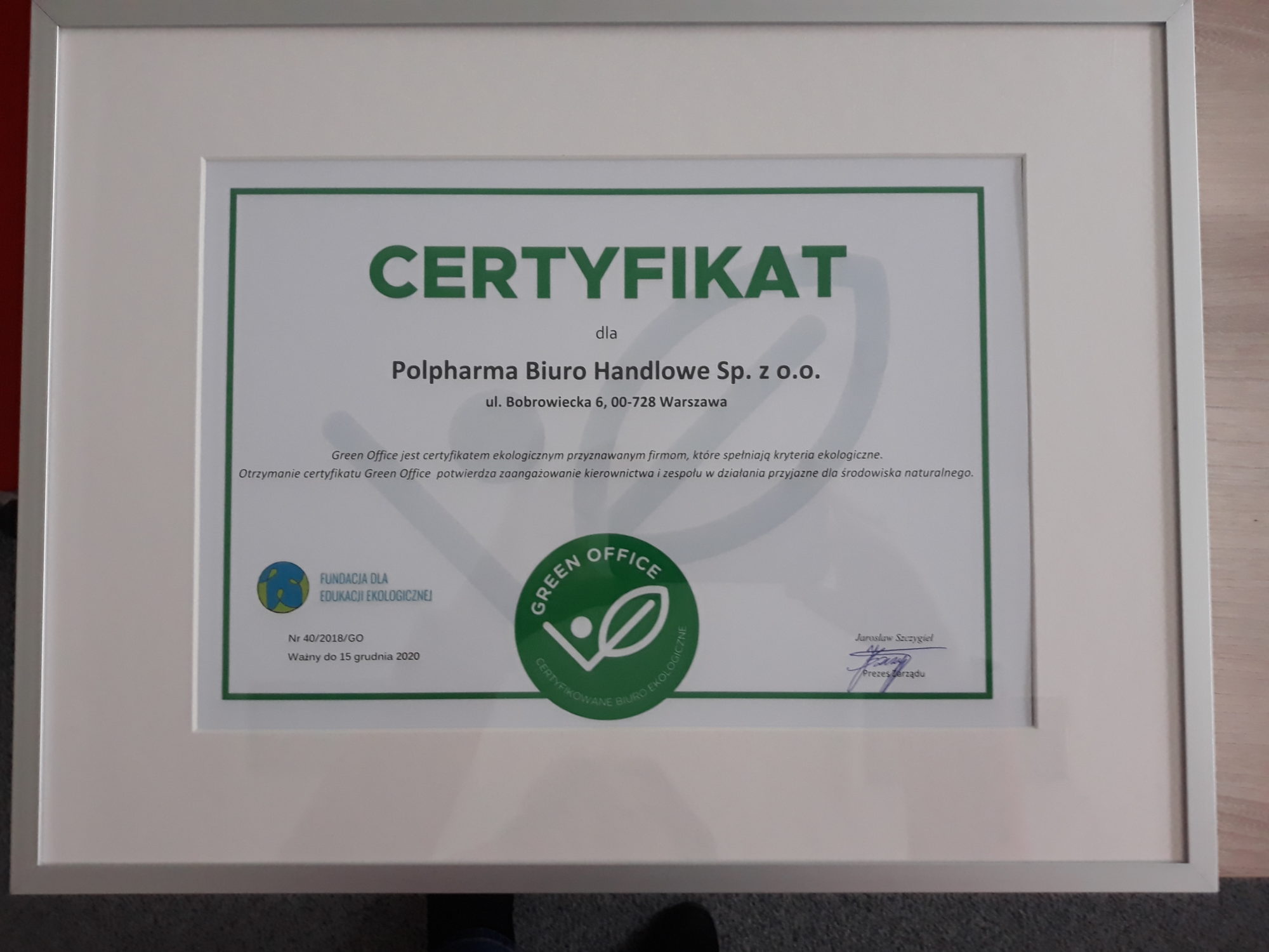 The Warsaw office has been certified as a Green Office for more than ten years.