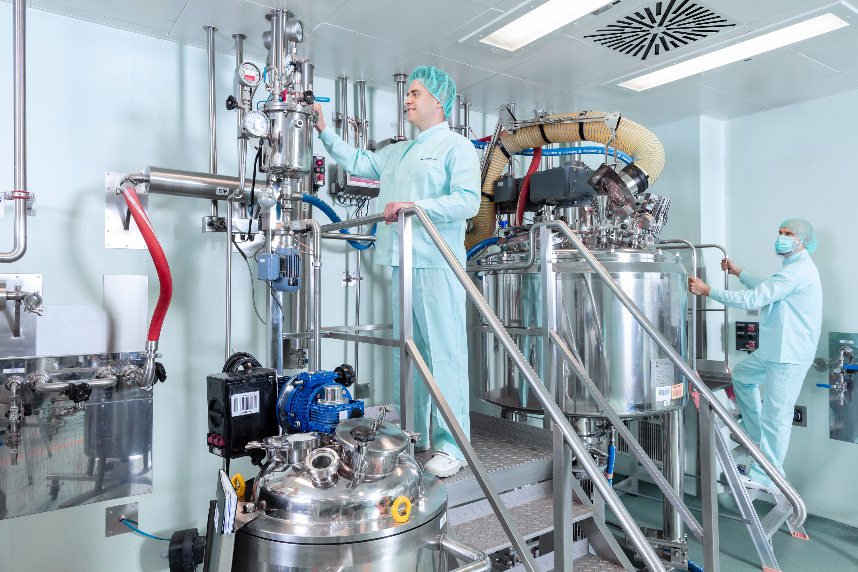 Ponieważ do produkcji leków nie można stosować wody z kranu (zachodzi ryzyko, że substancji chemiczne w niej zawarte wejdą w niekontrolowana reakcję ze składnikami leku) na terenie zakładu muszą funkcjonować stacje oczyszczania wody wykorzystujące m.in. technologię odwróconej osmozy i przygotowujące wodę czystą.