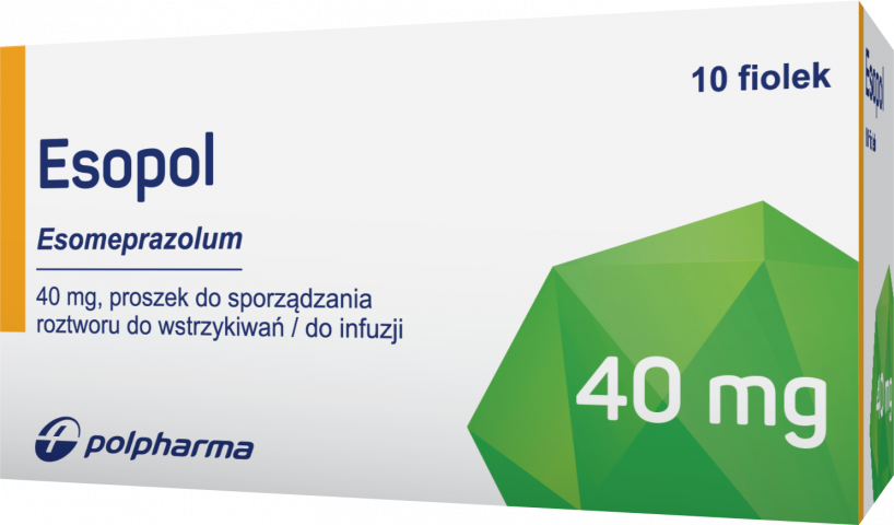 Produkt Esopol, proszek do sporządzania roztworu do wstrzykiwań / infuzji, jest wskazany u: dorosłych w hamowania wydzielania żołądkowego, gdy podanie doustne jest niemożliwe, w sytuacjach takich jak: choroba refluksowa przełyku (ang. gastroesophageal reflux disease, GERD) u pacjentów z zapaleniem przełyku i (lub) ciężkimi objawami refluksu, leczenie wrzodów żołądka związanych z leczeniem niesteroidowymi lekami przeciwzapalnymi (NLPZ), zapobieganie wrzodom żołądka i dwunastnicy, związanym z leczeniem NLPZ, u pacjentów z grupy ryzyka. W zapobieganiu nawrotom krwawienia po leczeniu endoskopowym z powodu ostrego krwawienia z wrzodu żołądka lub dwunastnicy. Dzieci i młodzież w wieku od 1 do 18 lat: w hamowaniu wydzielania żołądkowego, gdy podanie doustne jest niemożliwe, w sytuacjach takich jak: choroba refluksowa przełyku (GERD) u pacjentów z refluksowym zapaleniem przełyku z nadżerkami i (lub) ciężkimi objawami refluksu.
