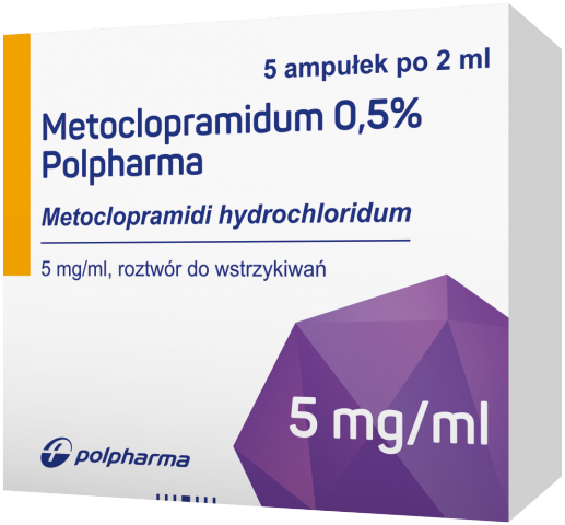 Metoclopramidum 0,5% Polpharma rozt do wstrzyk 5mg/ ml 5 amp. po 2 ml